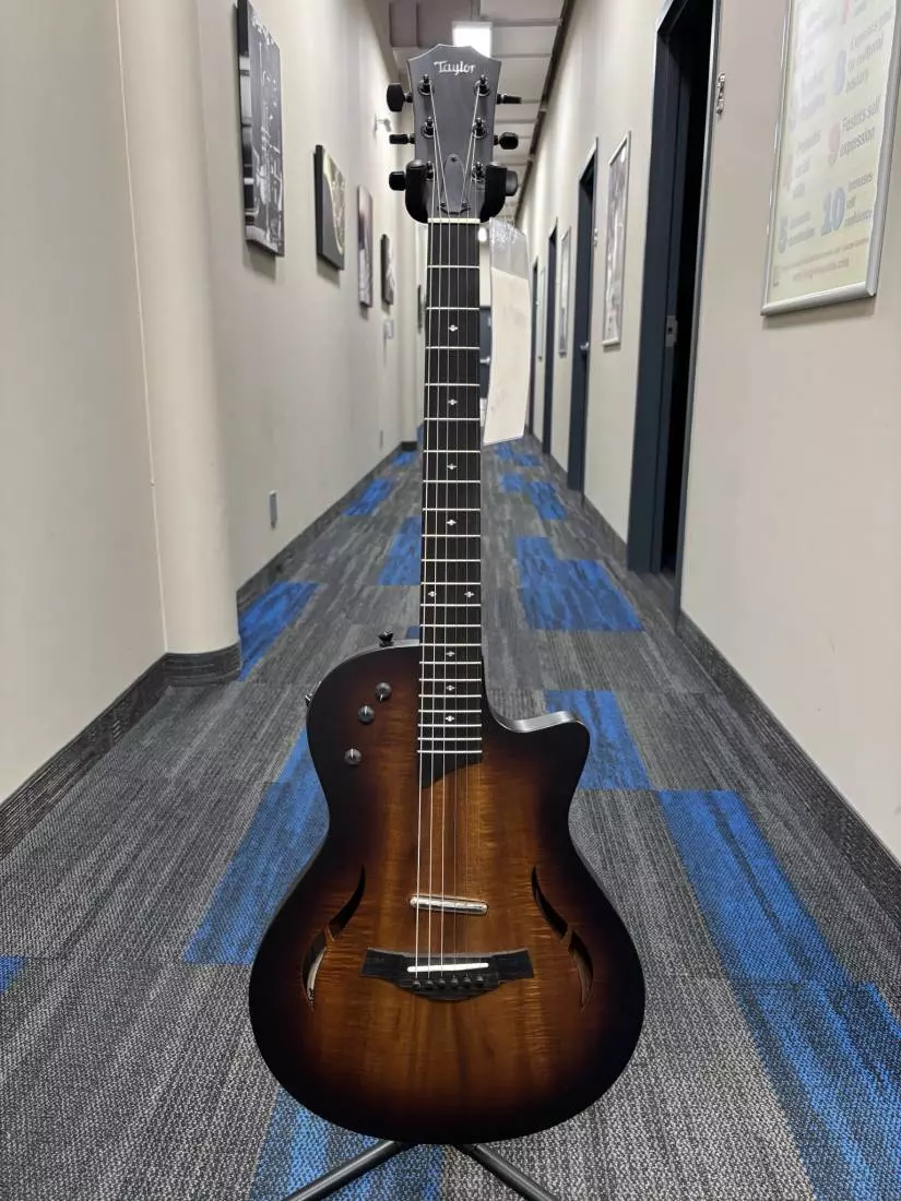 Outfitted with a beautiful Hawaiian koa top, the T5z Classic - Koa sits at the intersection of electric feel and sound with mellow acoustic tones, all provided by the unique three-pickup configuration. Two humbuckers and an acoustic magnet pickup combine to generate a wide range of sounds, while the five-way switching opens several avenues of tone. That means you can swap between high-gain electric sounds and soft acoustic tones with the flick of a switch. In terms of feel, the T5z Classic boasts a fast-playing response thanks to its 12" fretboard radius and jumbo frets. Aesthetic details include Small Diamond fretboard inlays, unbound F-holes and a striking koa top with a subtle edgeburst finish. It ships with a hardshell electric guitar case.