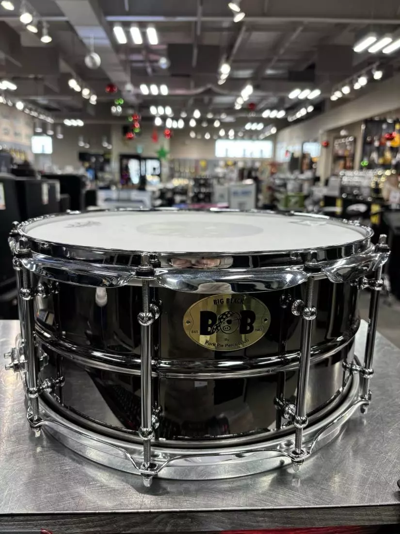 Pork Pie has been making waves in the drum industry with their unusual, innovative products. The Pork Pie Big Black Brass Snare Drum with Tube Lugs is a good example of this, with retro-style tube lugs that traverse the depth of the body and a brass shell with a stunning, black chrome finish. Outstanding sensitivity, volume and projection.