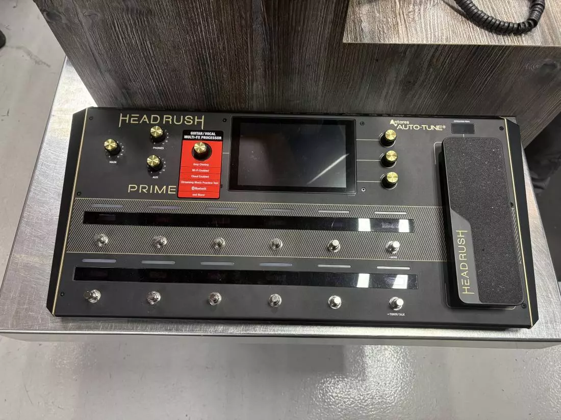 Featuring an advanced multi-core processor with a huge library of on-board guitar FX, amp, cab and microphone emulations, smart amp/pedal cloning and IR loading, best-in-class looper, and a full suite of vocal FX (including the industry-standard Antares Auto-Tune), the HeadRush® Prime is the most powerful, versatile, and realistic-sounding floorboard FX processor ever. The high resolution and ultra-responsive 7-inch display enables you to touch, swipe, and drag-and-drop to instantly create and edit your rigs in an unprecedentedly easy-to-use way. Housed in a road-ready steel chassis, the Prime features 12 footswitches with individual RGB indicators and OLED scribble strip displays, built-in expression pedal with toe-switch, and is packed with all the input and output connections you need including Wi-Fi and Bluetooth audio connectivity. The HeadRush Prime is the ultimate tool ready for any home, rehearsal, stage, or studio session.