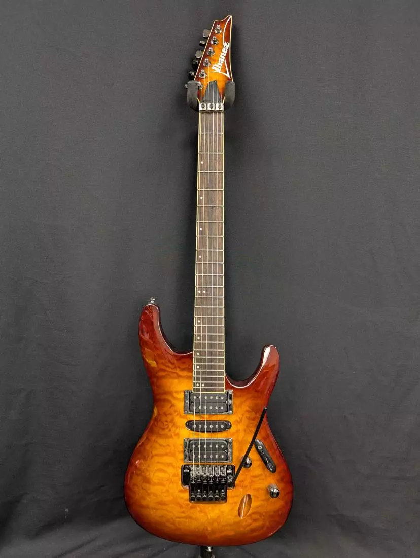 The cutting edge of Ibanez design, the S series continues to be a marvel of form and function. Its signature body shape - sculpted, lightweight, and mahogany - is stronger and more musically responsive than guitars weighing twice as much. The S series is still a rock 'n' roll version of a quick, graceful, and potentially lethal weapon.