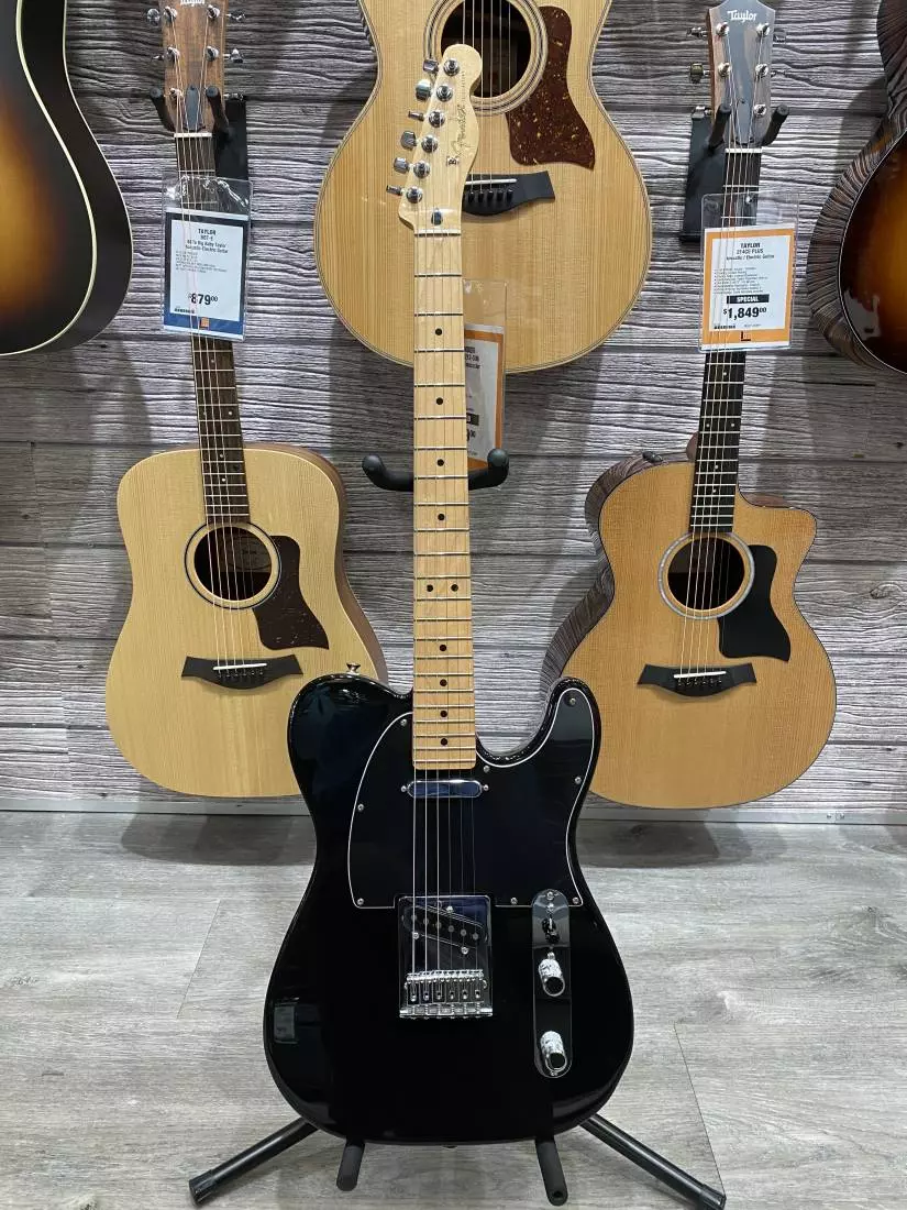 The pair of Player Series single-coil Telecaster pickups are crisp and articulate - it's authentic Fender tone with a modern edge. The "Modern C"-shaped maple neck's comfortable contours and smooth finish are ideal for almost any playing style. The addition of a 22nd medium jumbo fret to the contemporary 9.5"-radius fingerboard makes it easier to express yourself musically. To enhance the traditional twang and bite of a Telecaster, Fender added bent-steel saddles to the string-throughbody bridge for precise intonation and to help your sound cut through the mix, sustaining until the sun burns out. Other features include master volume and tone controls, a 3-way pickup switch with barrel tip, 3-ply pickguard, synthetic bone nut, dual-wing string tree, sealed tuning machines and four-bolt "F"-stamped neck plate that marks this instrument as the real deal - as Fender as it gets.