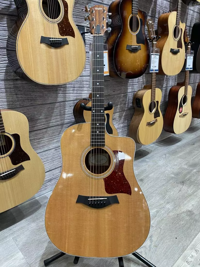 The Taylor 210CE has the classic look of a rosewood/spruce Dreadnought and is optimized for performance with cutaway access and Taylor electronics.