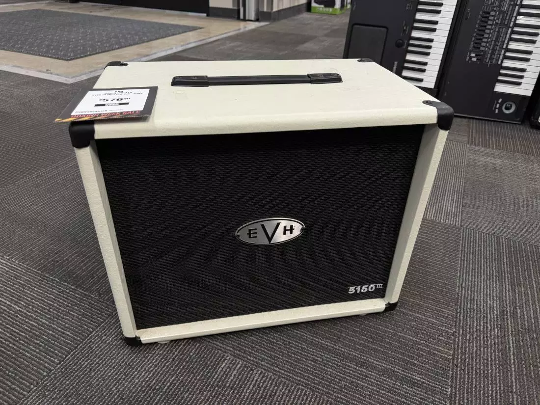 The EVH 5150 III 112ST cab is the EVH sound in a smaller package, constructed from birch plywood with ivory textured vinyl covering and housing a a single 12" Celestion G12H 30W Anniversary Speaker. Get classic EVH tone when combining this cab with the 5150 III 50W Head.