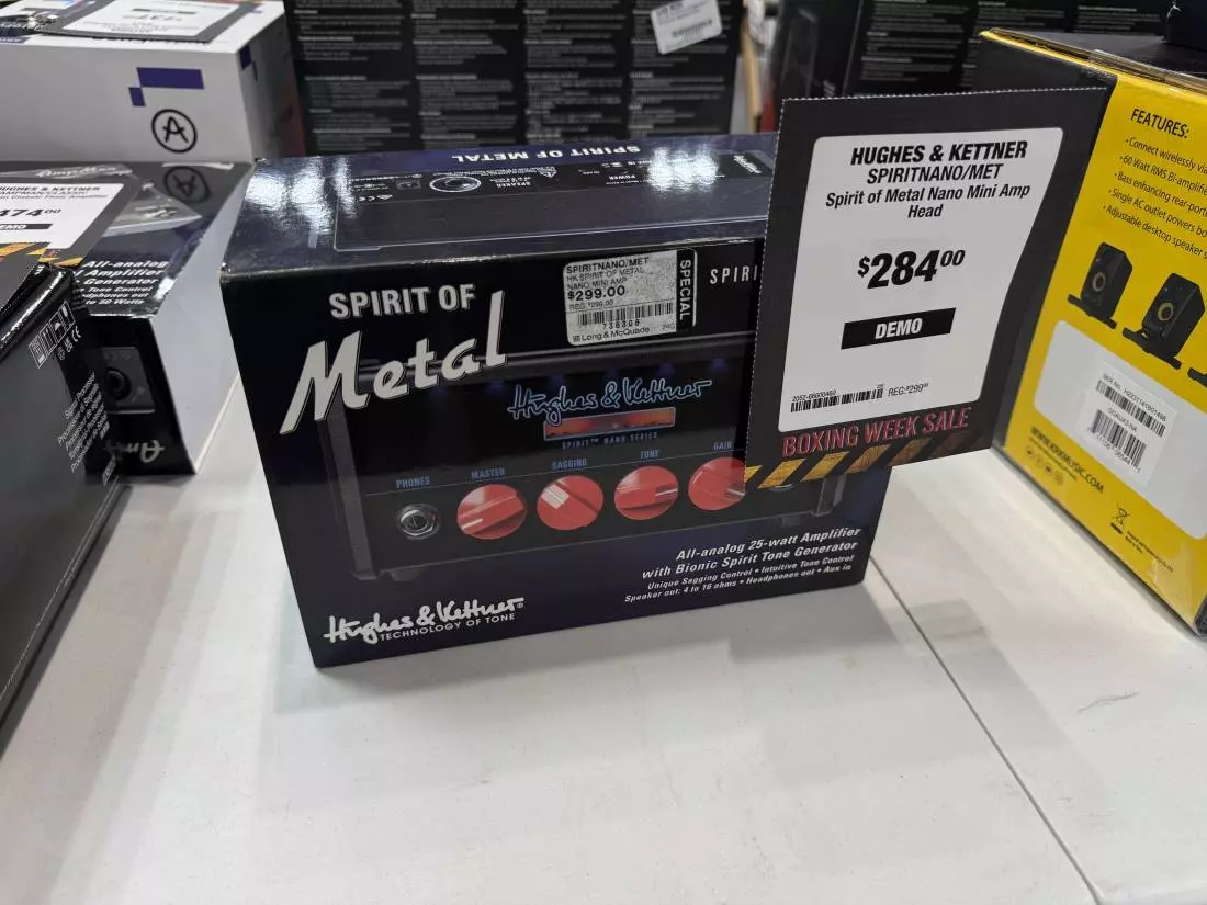 The Spirit Tone Generator, a multiple award-winning technology from Hughes & Kettner, is now available in a powerful yet exceedingly compact Spirit Nano Head. One of three models, the single-channel Spirit of Metal covers the sonic spectrum from classic to modern metal. Tons of gain are at your fingertips - simply twist the knob to bring out the beast. This amp's astonishing power output belies its miniature format. Pumping out up to 50 watts at 4 ohms, it delivers plenty of juice to drive even a 4x12" cab. Alongside Gain, Tone and Master knobs, the Nano Head offers a unique Sagging control that dials in delectable power amp saturation. Wherever you go, it goes with you to serve up for your fav heavy metal sounds.
