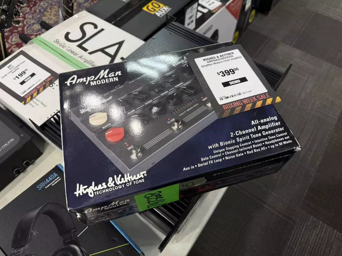 Hughes & Kettner's all-analog Spirit Tone Generator is now available in a compact pedal format. AmpMan Modern's two distinctive channels each embody an entire era of legendary guitar tones, served up by the built-in 50-watt power amp or the integrated Red Box AE+. With connoisseur tone-shaping capabilities, impressive power and a comprehensive set of professional features in a handsome little box, AmpMan is the go-to solution on stage, at home and in the studio.