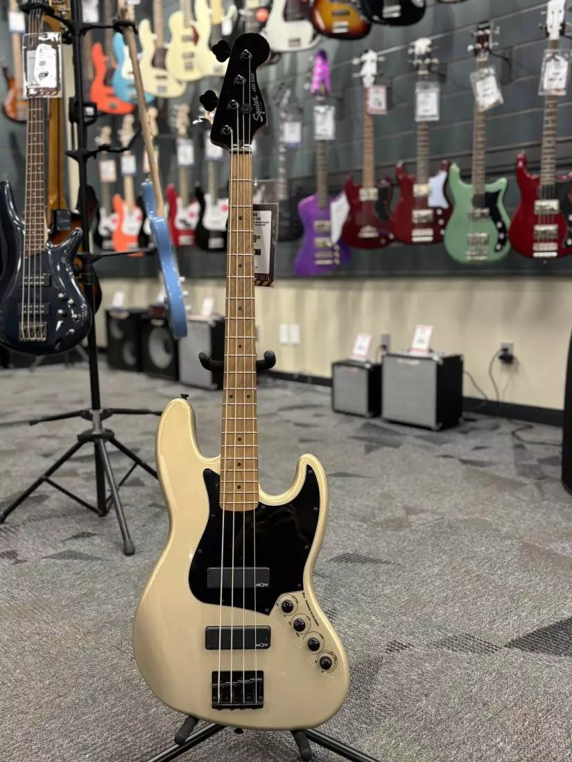 The Squier® Contemporary Active Jazz Bass® HH brings modern features and bold aesthetics to an iconic Fender platform to satisfy today's most discerning and daring players. At the heart of this bass is a pair of Squier SQR™ ceramic humbucking pickups powered by a Fender-designed active 9-volt preamp, offering intuitive controls for volume, pickup blend, traditional tone and stacked boost controls for bass and treble. The roasted maple neck was chosen for its optimal tone and stability, and a sculpted heel design allows for improved access to the upper frets. High-performance components round out the feature list and include a modern bridge with added mass for improved body resonance, and a set of open-gear tuning machines for smooth tuning action. Eye-catching styling cues include stealthy black hardware and a sleek painted headstock with chrome logos for a premium look.