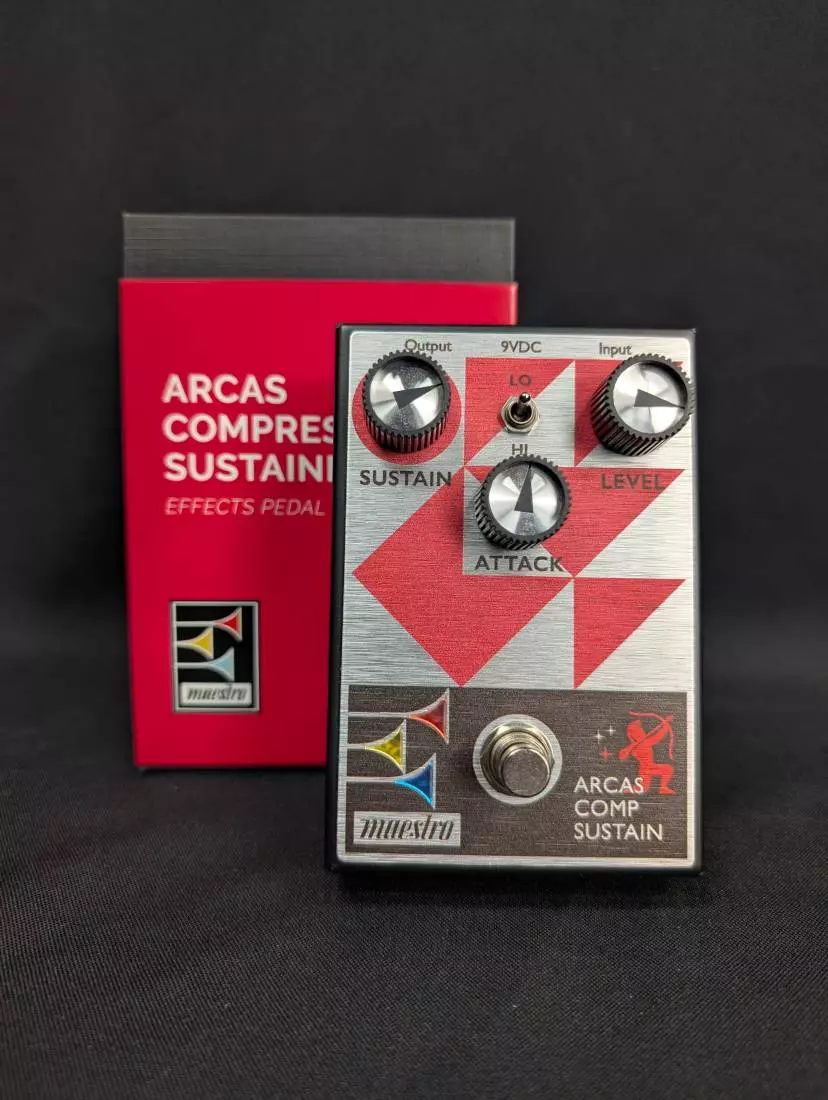 The Maestro Arcas Compressor Sustainer pedal provides excellent versatility. It offers both transparent, light compression as well as heavy, tight compression. It delivers enough sustain and level compensation to become a go-to workhorse for any situation. This all-analog pedal boasts a two-position Mode toggle switch for increased sonic versatility.