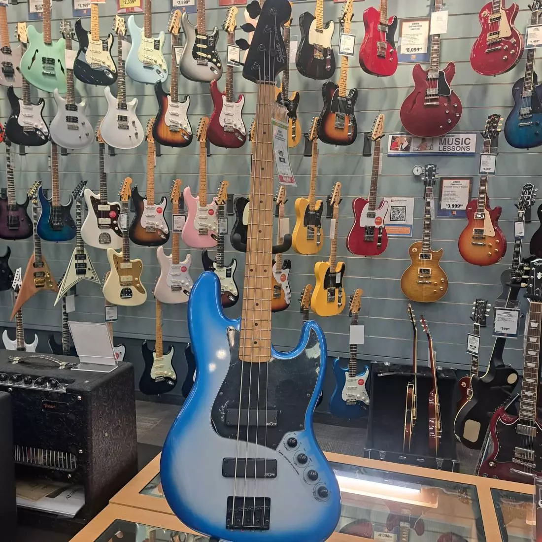 The Squier® Contemporary Active Jazz Bass® HH brings modern features and bold aesthetics to an iconic Fender platform to satisfy today's most discerning and daring players. At the heart of this bass is a pair of Squier SQR™ ceramic humbucking pickups powered by a Fender-designed active 9-volt preamp, offering intuitive controls for volume, pickup blend, traditional tone and stacked boost controls for bass and treble. The roasted maple neck was chosen for its optimal tone and stability, and a sculpted heel design allows for improved access to the upper frets. High-performance components round out the feature list and include a modern bridge with added mass for improved body resonance, and a set of open-gear tuning machines for smooth tuning action. Eye-catching styling cues include stealthy black hardware and a sleek painted headstock with chrome logos for a premium look.