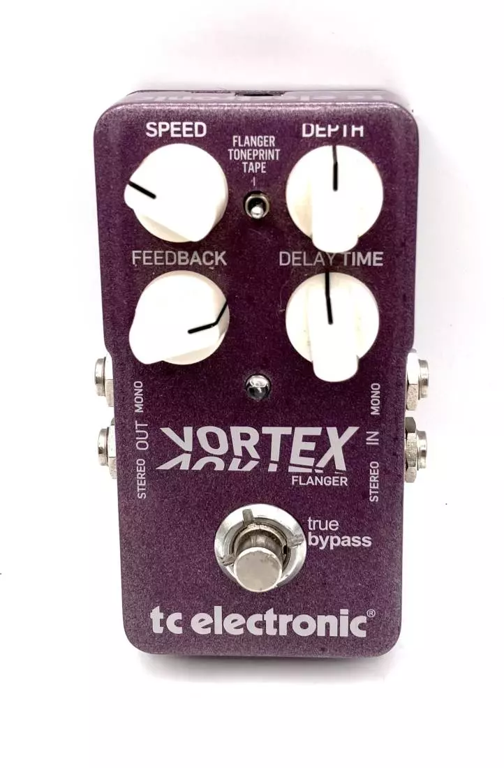 This pedal ranges from a brain twisting through-zero-flange tape echo over more contemporary sounds to an all-out flange-war, which ensures you will always be able to find the appropriate flange for the job at hand. Vortex Flangers through-zero option also gives you the ability to get both a negative and a positive effect to your flange sounds, while the other options allow you to go from a classic tube-type flanger to a more soft sounding tape flanger. The knobs allow you to set the speed of the modulation, but also the depth and the intensity, giving you a set of well-rounded controls. You are also able to set the delay time, which is they key to finetuning the effect, no matter if youre going for subtle flanging or more extreme jet flanging sounds. Finally, the Feedback knob allows you to feed the modulated signal back into the pedal, which basically gives you more of everything thats so cool about flanging.