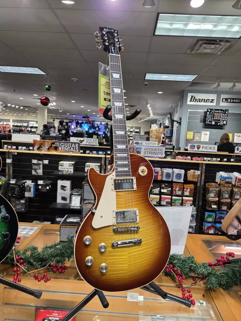 The new Les Paul Standard returns to the classic design that made it relevant, played and loved - shaping sound across generations and genres of music. It pays tribute to Gibson's Golden Era of innovation and brings authenticity back to life. The Les Paul Standard 60's has a solid mahogany body with an AA gured maple top, and a slim taper 60's-style mahogany neck with a rosewood fingerboard and trapezoid inlays. It's equipped with a classic-style Tune-O-Matic bridge, aluminum stop bar tailpiece, Grover Rotomatic "Kidney" tuners, and gold top hat knobs with silver reectors. The Burstbucker 61R (neck) Burstbucker 61T (bridge) pickups are loaded with AlNiCo V magnets, audio taper potentiometers and orange drop capacitors.