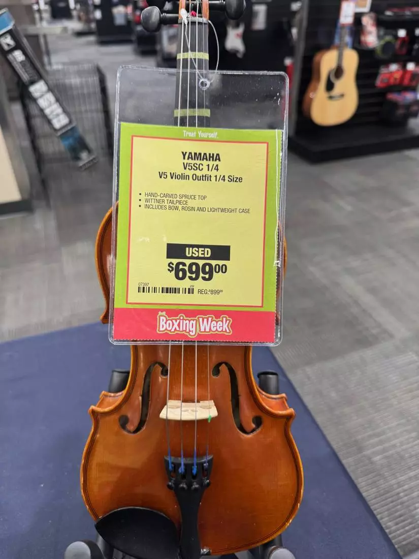 Yamaha V5SC acoustic violin offers the student violinist an instrument that is crafted to deliver outstanding tone, quality and features that are usually found on more expensive instruments. The V5SC features hand-carved Spruce top, with Maple back, and neck crafted from select materials. Each instrument is produced using the same traditional methods and adhesives as used on high quality violins and is even finished with an oil varnish that is carefully applied by brush. Designed, sized and priced for young learners, these fine instruments are an excellent choice.