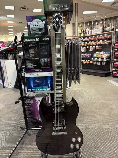 The new Gibson SG Modern incorporates many contemporary updates that players have embraced and it's much more than a classic solid guitar; it's a hybrid between an SG and a Les Paul. Shaped and scarfed like a classic SG, the body is crafted with a AA maple top and mahogany back, characteristic of a Les Paul. This combination is renowned for its resonance and sustain. The genuine ebony, 24 fret compound radius fingerboard and asymmetrical, slim taper neck allow fast and silky access to the highest frets. A pair of calibrated BurstBucker Pro Alnico V humbuckers deliver fire power and the push-pull controls allows you to switch between the Gibson