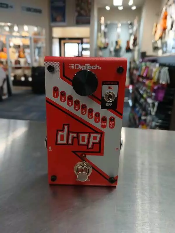 The DigiTech Drop is a dedicated polyphonic drop tune pedal that allows you to drop your tuning from one semitone all the way down to a full octave. Get down-tuned chunk without having to change guitars! The Drop also features a momentary/latching switch. With the switch set to momentary, you can turn the Drop into a true performance pedal. Fast trills and roller-coaster pitch dips are at the tip of your toes.
