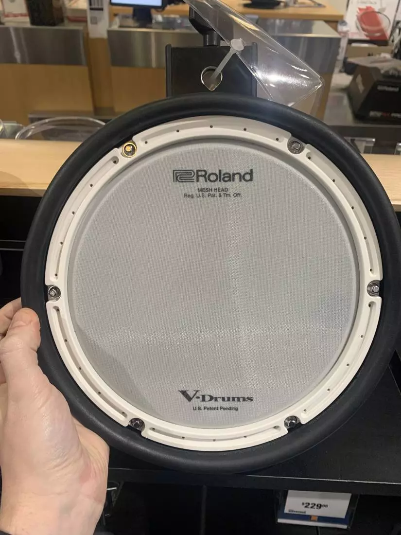 Rolands newest mesh V-Pad (PDX-8) offers an expanded 10-inch rim for more comfortable and quiet rim-shots, as well as separate head and rim triggering for authentic performance.