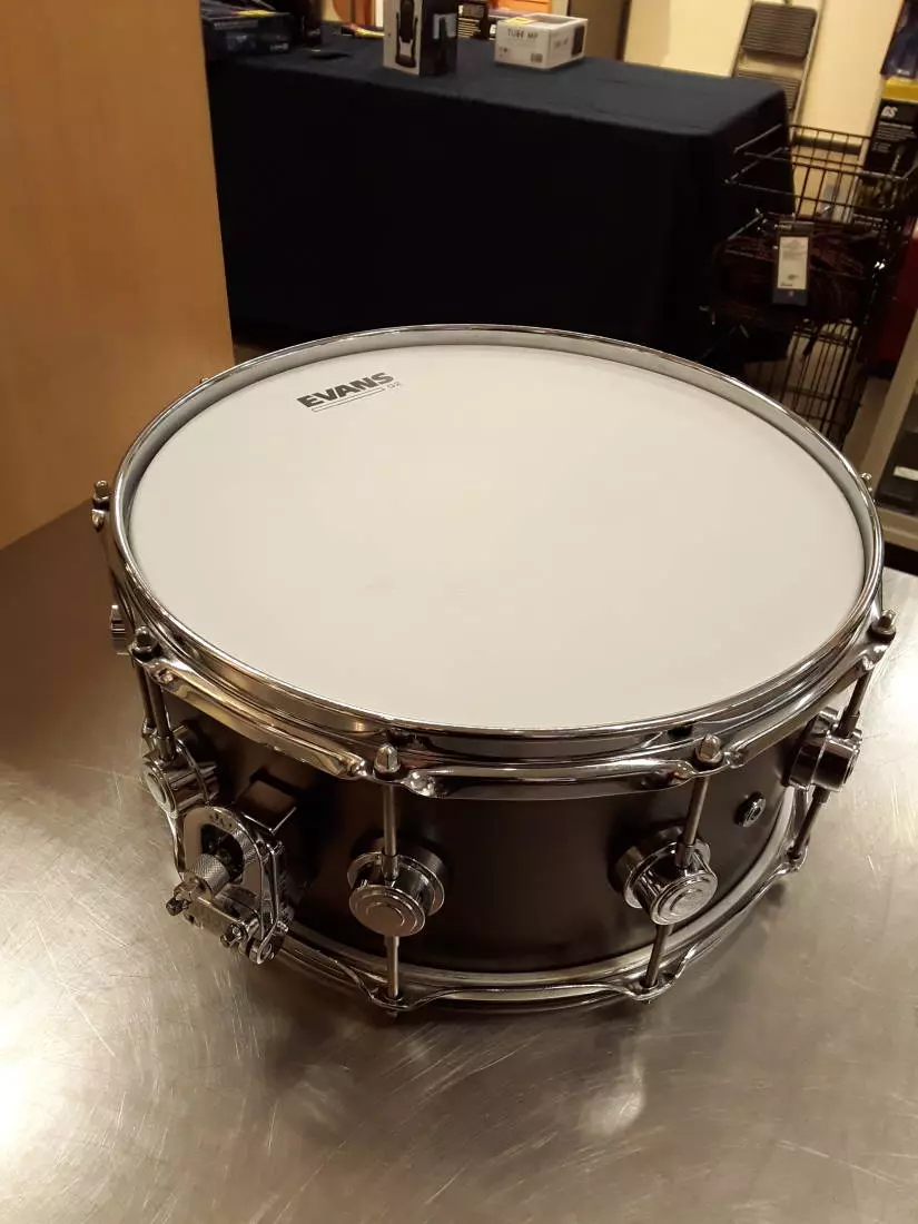 Benefiting from a thin industry-standard 1mm shell and featuring a striking satin finish, the Collectors Series Satin Black Over Brass snare drum is a powerful addition to this versatile line. Ideal for a broad spectrum of styles and genres, it offers a classic studio brass snare sound and a signature brightness and cut with a decidedly metallic tonal characteristic. Customize it with any available DW Custom Shop drum hardware color. Also available: 5.5x14″, 7x13″, 8x14″ *