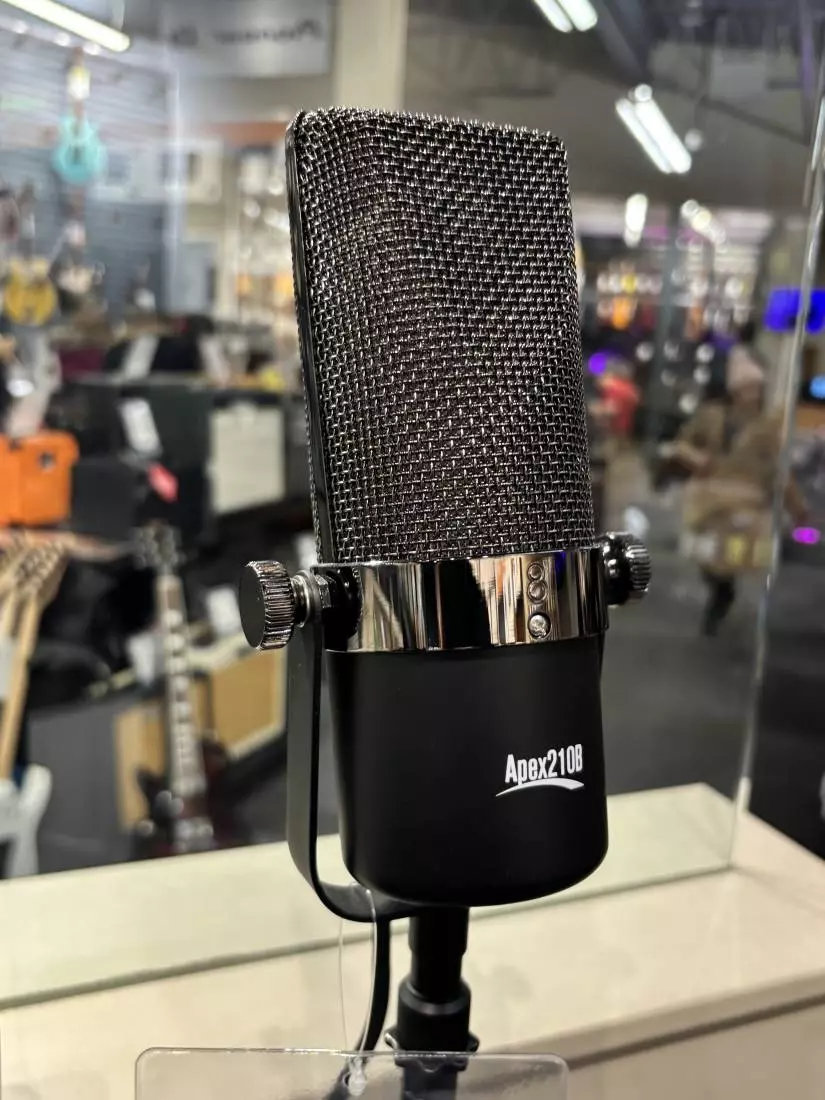 The active element of the Apex210 is a very thin corrugated aluminum ribbon mounted under low tension between the poles of a strong magnet. The asymmetrical figure-8 pickup pattern has an extended sweet spot on the rear face of the microphone allowing the recording to accurately reproduce the natural space and ambient reverberation of a good sounding live room with incredibly fast and accurate transient response and stunning realism. The Apex210 ribbon microphone is ideal for todays direct to digital recordings.
