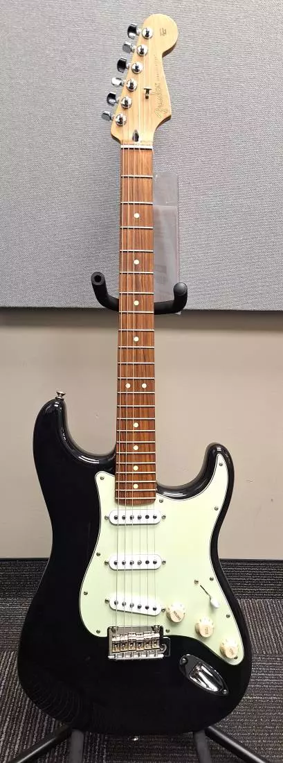 The "Modern C"-shaped maple neck's comfortable contours and smooth finish are ideal for almost any playing style. By adding a 22nd medium jumbo fret to the contemporary 9.5"-radius fingerboard Fender made it easier to express yourself musically. The updated 2-point tremolo design has smoother travel for enhanced playing feel while simultaneously giving you rock-solid tuning stability since there's less friction against the posts. Other features include master volume and tone controls, a 5-way pickup switch, 3-ply pickguard, synthetic bone nut, dual-wing string tree, sealed tuning machines and four-bolt "F"-stamped neck plate that marks this instrument as the real deal - as Fender as it gets.