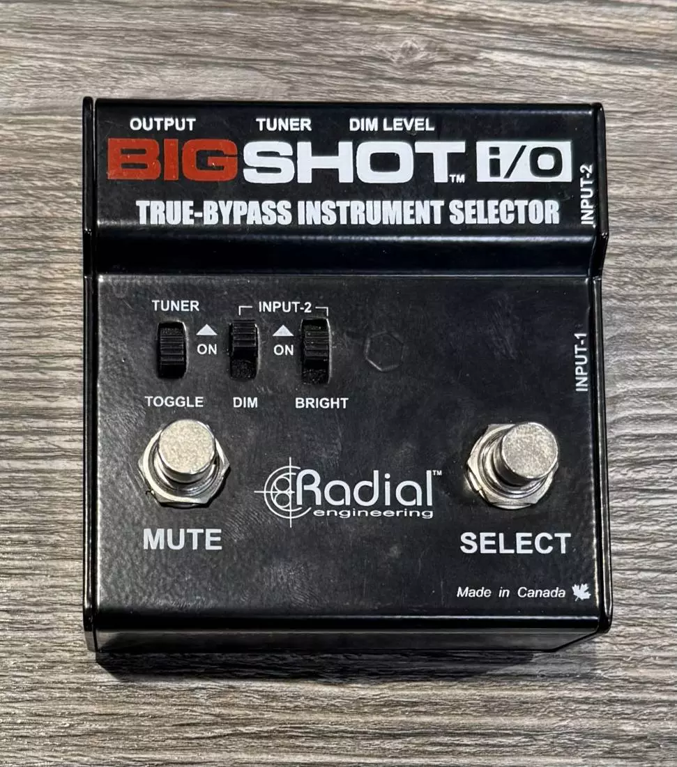 The Radial Engineering Bigshot I/O True Bypass Instrument Selector is a passive, true-bypass signal switcher that allows you to switch back and forth between two instruments, match their respective volumes and mute your entire rig as well.