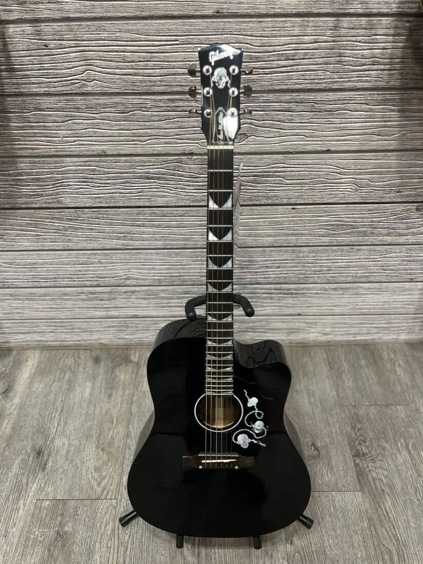 Dave Mustaine, the legendary guitarist, vocalist, songwriter, and founder of the Grammy-award winning and multi-platinum-selling band MEGADETH is one of the most influential metal icons and riff lords of all time. His music has inspired multiple generations of players around the world. Gibson is proud to introduce the Dave Mustaine Songwriter. Designed in collaboration with Gibson brand ambassador Dave Mustaine, it features a slightly thinner walnut Songwriter body for playing comfort with a cutaway for easy access to the upper frets, a 24.75" scale mahogany neck with a 24 fret ebony fretboard (the first 24 fret neck ever installed on a Gibson acoustic guitar), mother of pearl teeth inlays, Grover Rotomatic tuners, a TUSQ nut, saddle, bridge pins, and a higher output LR Baggs VTC under-saddle pickup with soundhole mounted volume and tone controls. Vic Rattlehead artwork is featured on the pickguard and on a mother of pearl peghead inlay. A custom hardshell case is included.