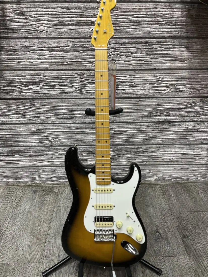 The JV Modified Series combines classic aesthetics with modern playability to suit the needs of today's guitarist. Taking cues from the now highly sought-after "Japanese Vintage" reissues from the early '80s, JV Modified guitars are a refined take on a modern classic.The '50s Stratocaster HSS has a resonant basswood body and features a pair of vintage-voiced single-coil pickups in the neck and middle positions and a powerful humbucking pickup in the bridge position. A push-pull pot on Tone 2 splits the humbucking pickup for sparkling single-coil sounds, making this Strat extremely versatile. The Soft "V"-shaped maple neck has a silky-smooth satin finish and the 9.5" radius maple fingerboard and medium jumbo frets provide effortless playability. For the player seeking classic Fender instruments with a twist, the JV Modified Series delivers a unique combination of vintage Fender style and modern playability.