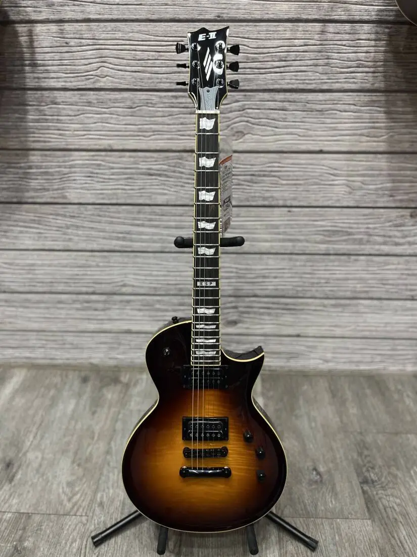 Formerly called "ESP Standard", all ESP E-II instruments are created at our ESP factory in Tokyo, Japan, and are designed for professional players who accept no compromises in tone, feel, or reliability for their guitars and basses. The E-II Eclipse Full Thickness is exactly as the name implies...a body with traditionally thick design. This guitar offers set-thru construction, using a mahogany body with flamed maple top that looks amazing in Tobacco Sunburst finish, complemented by single ply creme binding.