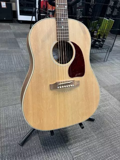 Turn heads with the J-45™ Studio Walnut. Hand-built using solid walnut back and sides and a solid Sitka spruce top, this updated J-45 Studio features a traditional body depth for warm, rich tone. The Advanced Response profile utile neck ensures smooth, easy playability. Available in Satin Natural and Satin Walnut Burst finishes (including a left-handed model), the J-45 Studio Walnut has an L.R. Baggs™ Element Bronze active under-saddle piezo pickup for studio-quality plug-and-play anywhere. Packaged in an included hardshell case for portability, this J-45 Studio Walnut is ready for the studio and the stage.