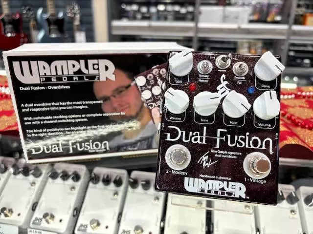 The Wampler Pedals Dual Fusion, the first pedal to be specifically voiced for the fastest growing breed of musicians around. With the most versatile stacking/signal path options available on an analog pedal, it is the foundation of modern Fusion...Add in the versatility you expect from Wampler Pedals, the Dual Fusion will appeal to guitarists from all genres at all levels.