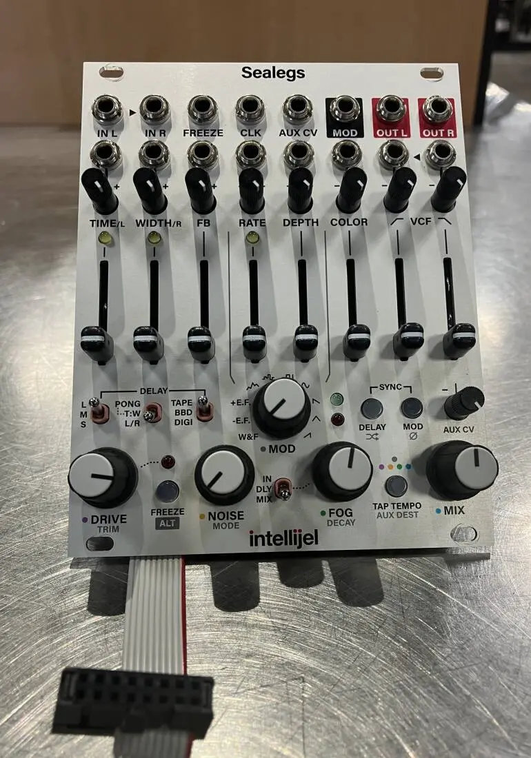 Sealegs is a collection of effects centered around a true stereo multi-model delay. Tape, Bucket Brigade, and Crossfading Digital models; a saturating input drive; low- and high-pass filters; crackle & hiss generator; a multi-position 1970s-inspired reverb; internal modulators; nine CV inputs with attenuverters; three sets of ranges; clock sync/tap tempo; three unique stereo configurations.