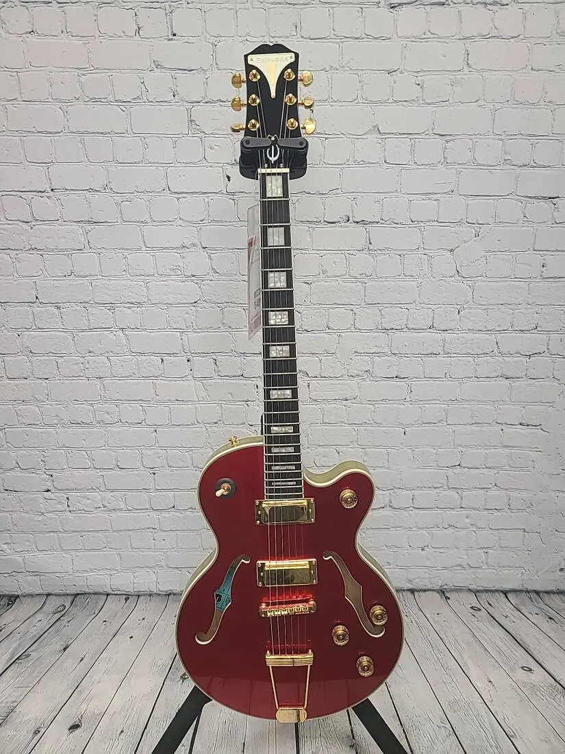 The next generation of "Kat" archtops featuring ProBucker™ FB720 mini humbuckers, the new UpTown Kat™ ES Collection is the next generation of Epiphones classic Kat archtop and features a true ES style semi-hollowbody archtop with newly designed Epiphone ProBucker™ FB720 mini humbuckers™, Graph Tech® nut, Ebony fingerboard, and Grover® Rotomatic tuners. Available in Sapphire Blue Metallic, Ruby Red Metallic, Emerald Green Metallic, and Topaz Gold Metallic.