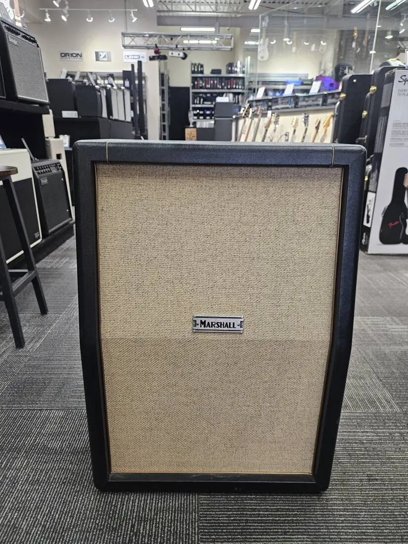 The same iconic JTM sound, packing the power you know and love from Marshall in a new compact size. The ST212 was designed to be paired with the ST20H. With Celestion Creamback speakers, this cab is ideal for creating that definitive vintage tone.Hand built at Marshall's world-class factory in Bletchley, England, the Studio JTM features fingerjointed cabinets, hand-welded chassis and the highest quality componentry. Adorned with period-correct aesthetics from the same metal, red enamel poured "coffin" logo to its fawn fret complete with gold piping and beading, the Studio JTM beautifully nods to the 60s.
