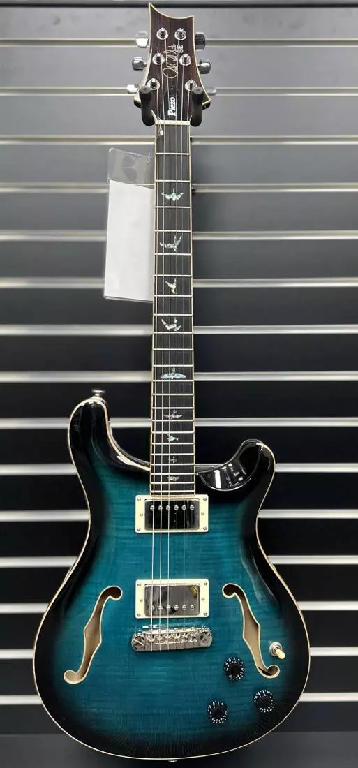 Now boasting a newly-designed LR Baggs/PRS Piezo system, the SE Hollowbody II Piezo provides musicians with the versatility of wielding both acoustic and electric tones in one instrument. The instrument is designed with two discrete volume controls (magnetics and piezo) and output jacks (mix/piezo and magnetics). Players can plug into the "Mix/Piezo" jack and use the individual volume controls to blend the 58/15 "S" pickups with the piezo's acoustic tones. Alternatively, players can plug into the jacks separately, so the guitar can run magnetic pickups into an amp and run the piezo through an acoustic amp or DI into the soundboard. When using the magnetic output jack in isolation, the piezo battery is bypassed completely, acting as a failsafe (in this scenario, the magnetic pickups still work even if the piezo battery has run out of juice). This is the most versatile SE instrument in the Series' nearly twenty-year history.