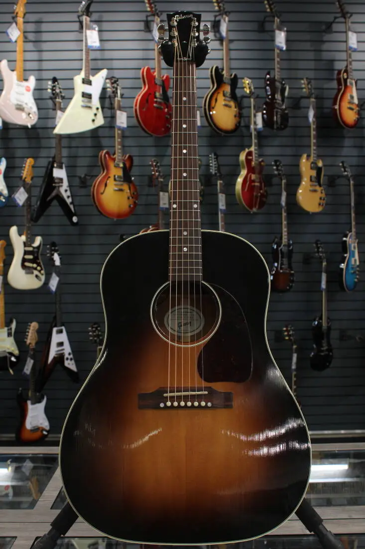 The J-45 is Gibson's best-selling acoustic of all time. Nicknamed "The Workhorse" and first introduced in 1942, this iconic acoustic has become the cornerstone of its round-shoulder, dreadnought line. World renowned for its full, balanced expression, warm bass and excellent projection, the J-45 has been refined to carry this legacy to new heights. This model delivers a sound with incredible dynamic range, warm mids, and a tight punchy bass.
