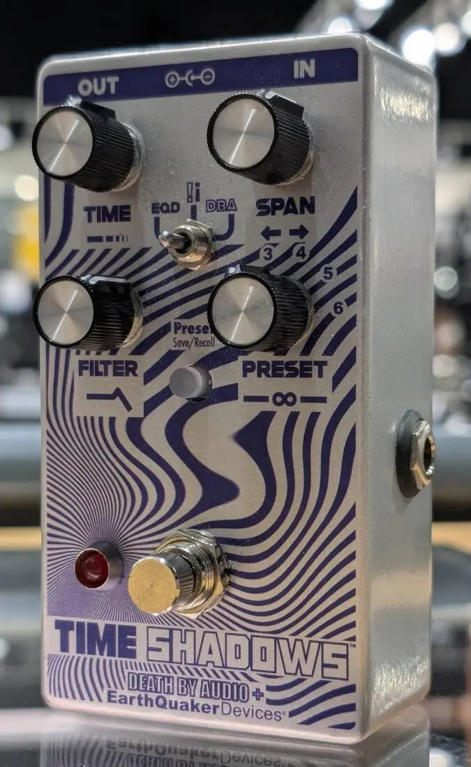 With the switch to the left Time Shadow's controls are completely the brainchild of EarthQuaker Devices resident genius Jamie Stillman. Flip the switch to the right, and you enter the head of the madman Oliver Ackermann from Death By Audio barely clutching to reality. Place the switch in the middle and enter a whole new realm of pitch warping delays brought to you by a telepathic mind-meld with a 5th dimensional dream being.