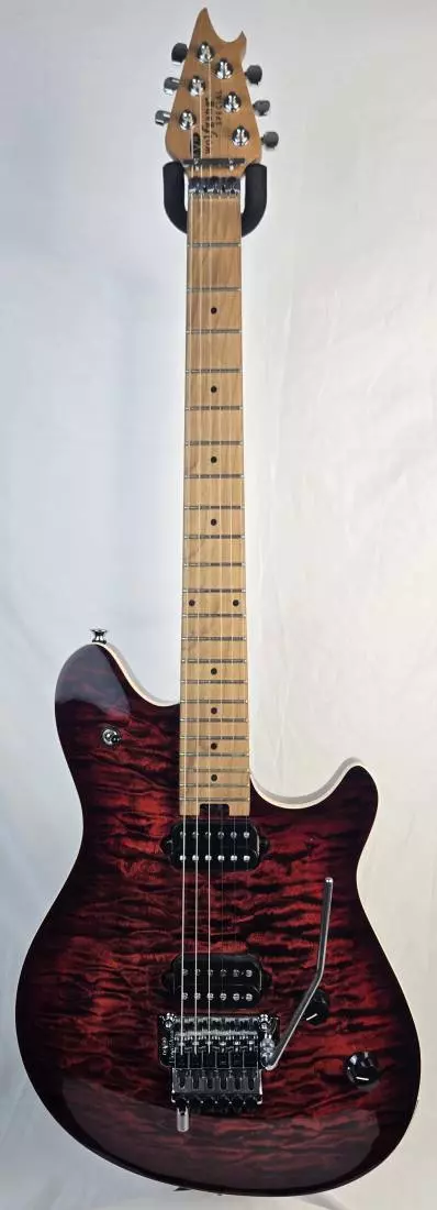 The Wolfgang Special QM features a basswood body with an arched quilt maple top and a robust graphite-reinforced bolt-on quartersawn baked maple neck. The neck is carved and rolled to Eddie Van Halen's exacting specifications and features a hand-rubbed satin urethane finish on the back. Primed for high performance, energetic riffing and blazing leads, the 12"-16" compound radius baked maple fingerboard has 22 jumbo frets and black dot inlays. Truss rod adjustments have also never been easier thanks to a spoke wheel conveniently located at the base of the neck.