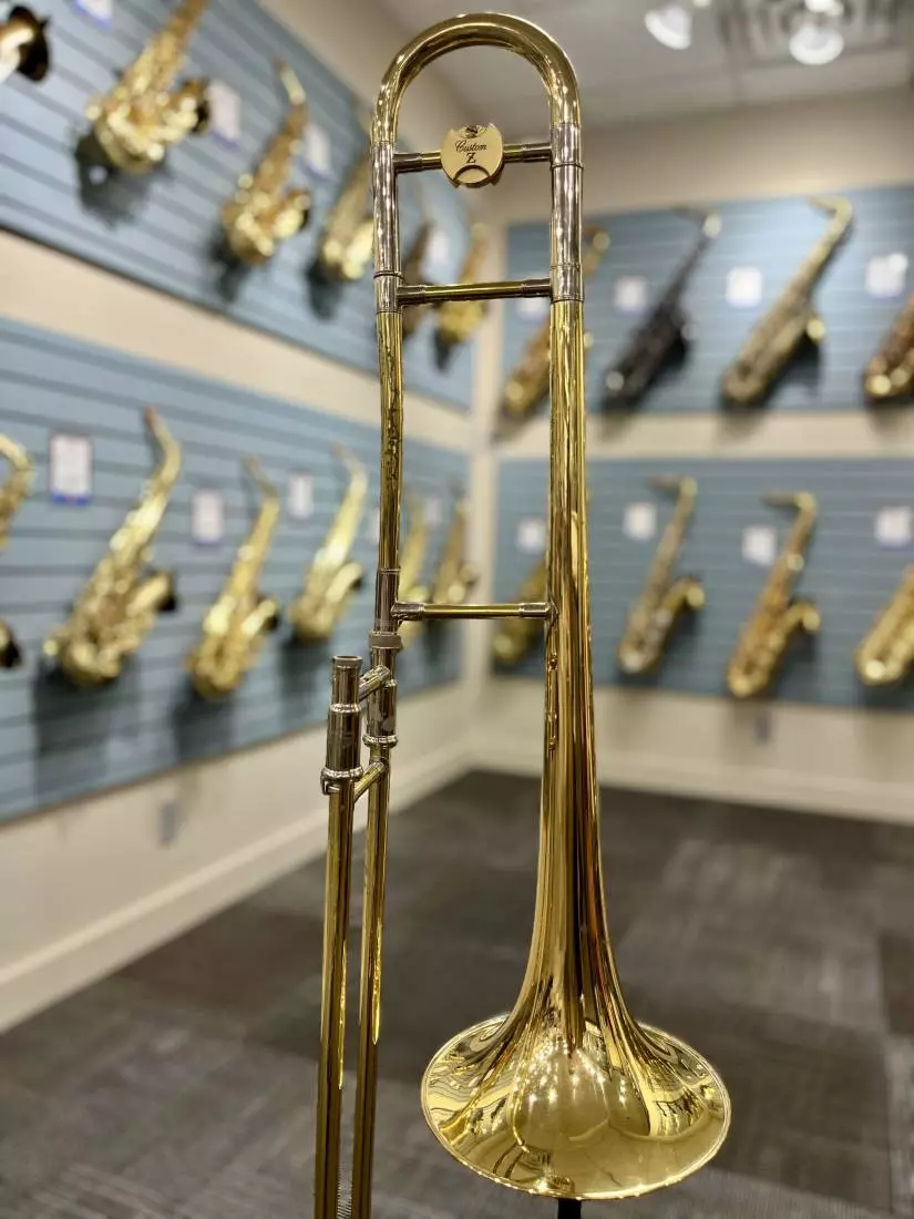 The YSL891Z "Custom Z" trombone is designed in conjuction with jazz giants Wycliffe Gordon and Andy Martin with the jazz trombonist in mind. The yellow brass construction around a medium .508" bore offers an even and direct sound. A lighter weight build gives this horn a responsive and bouncy feel ideal for those looking for a bright jazz sound.
