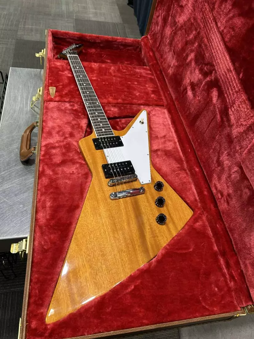 It has traveled to stages around the world, but the 70s icon is back to explore a new generation of players. Featuring a pair of 70s Tribute humbuckers™, hand-wired with Orange Drop® capacitors, this Explorer™ begs to be played loud. With its futuristic body shape, bound rosewood fingerboard, black Speed knobs, and chrome hardware, it looks as iconic as the generation of music it helped create.