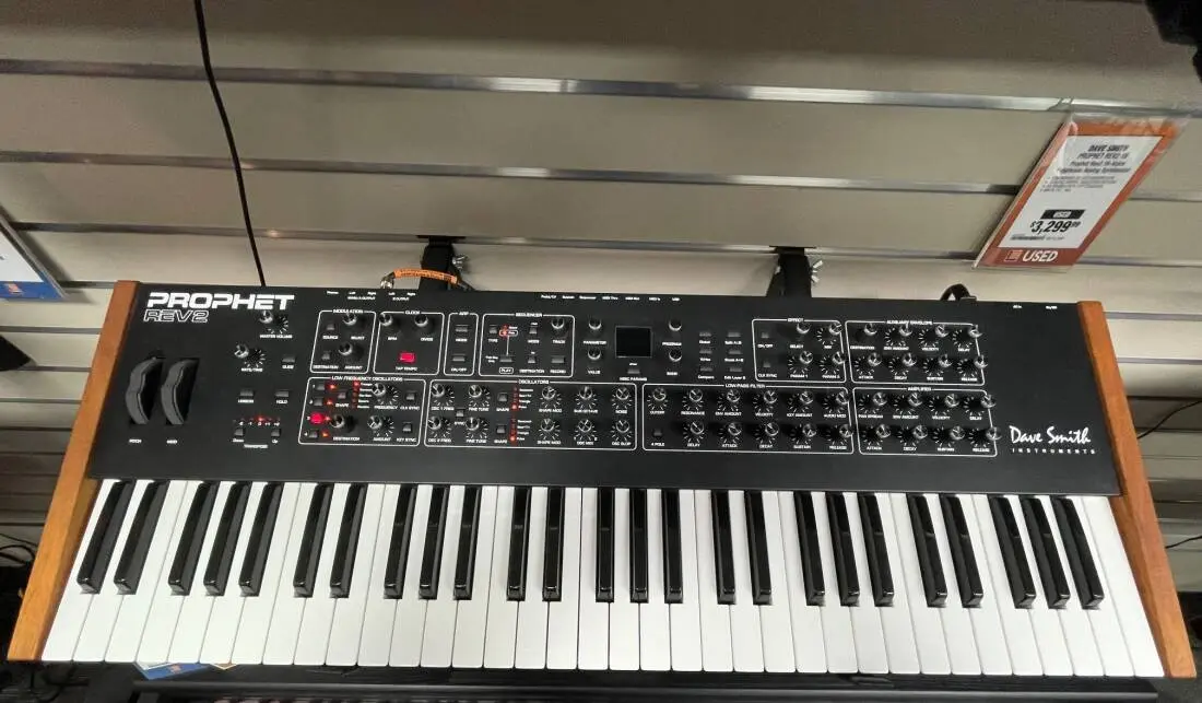 The Prophet Rev2 is Dave Smith's reimagining of his Prophet '08 poly synth - a modern classic that has appeared on countless recordings and stages since its debut in 2007. The Prophet Rev2 retains all of the key features of the Prophet '08 and expands on them. It has twice the polyphony, twice the mod matrix, waveshape modulation on all waveforms, digital effects per layer in stacked or split voice mode, a polyphonic step sequencer per layer, and more. The result is a true analog powerhouse. Best of all, you can download any of the many existing libraries of Prophet '08 sounds and they will not only sound identical, but can be enhanced with the new features.
