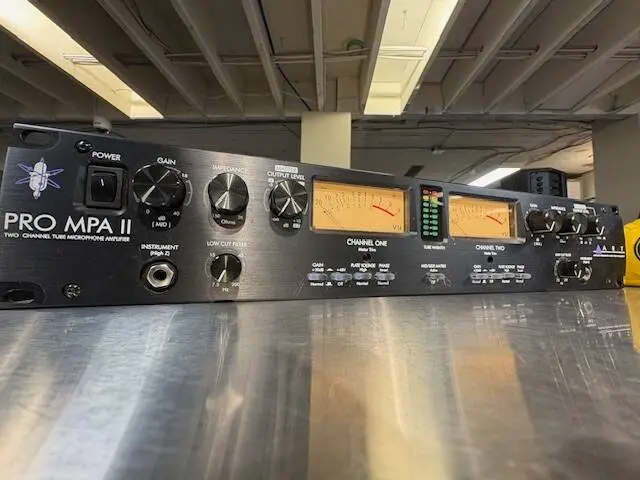 The ProMPA II can operate at either a low or high plate voltage on the two integrated hand-selected 12AX7 tubes for wider variation of preamp tone and performance. Large back-lit analog VU output meters display output levels while multi-colored LED arrays show tube gain.