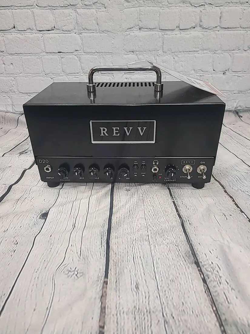 The Revv D20 is an inspiring all-tube clean & crunch amp with Two notes Torpedo-embedded reactive load & virtual cabinets. This all-tube head has an optional reactive load for organic feel and tone when playing without a cab, and hosts virtual cabinets onboard for direct recording, silent playing, and live performance without a microphone. The Revv D20 has you covered.