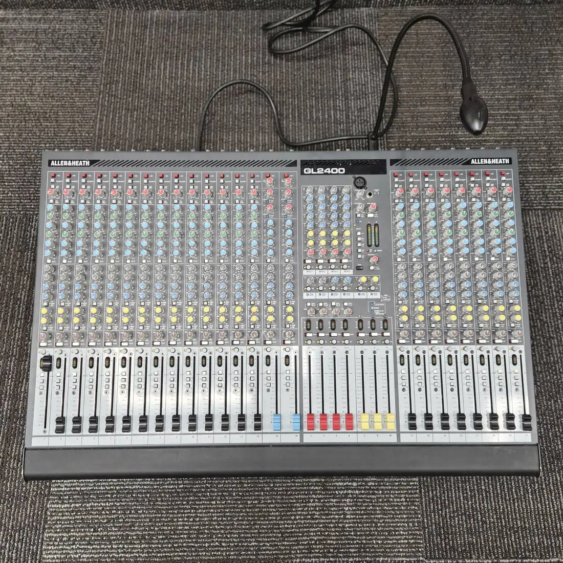 GL2400 is a compact, dual function, LR, Mono sum, 4 group, 6 aux, 7x4 matrix console. Frame sizes range from 16 to 40 channels, including 2 dual stereo channels.