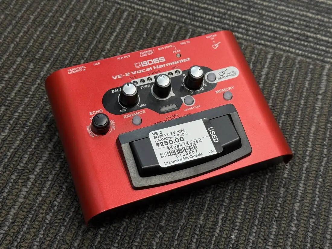 Combining sophisticated sound with simple operation, the VE-2 Vocal Harmonist delivers a complete effects solution for all singers, particularly those that perform with guitar. This portable, battery-powered stompbox has everything you need to create polished, studio-quality sounds everywhere you sing, from concert stages and street performances to practicing and having fun at home. The VE-2 magically creates beautiful harmonized vocals that follow your singing, with pitch that automatically tracks the chords played on a connected guitar, a preset key, or a combination of the two. Using one of these three operation modes, it's easy to create perfect real-time harmonies in any key, even if you have no experience with gear or music theory. In addition to harmony, the VE-2 provides essential effects to enhance your voice, such as high-quality reverb/delay and an enhancer with real-time pitch correction. Also included is a USB audio function that allows you to connect to your computer and easily capture impressive VE-2 vocal sounds for music recordings, social media videos, and more.
