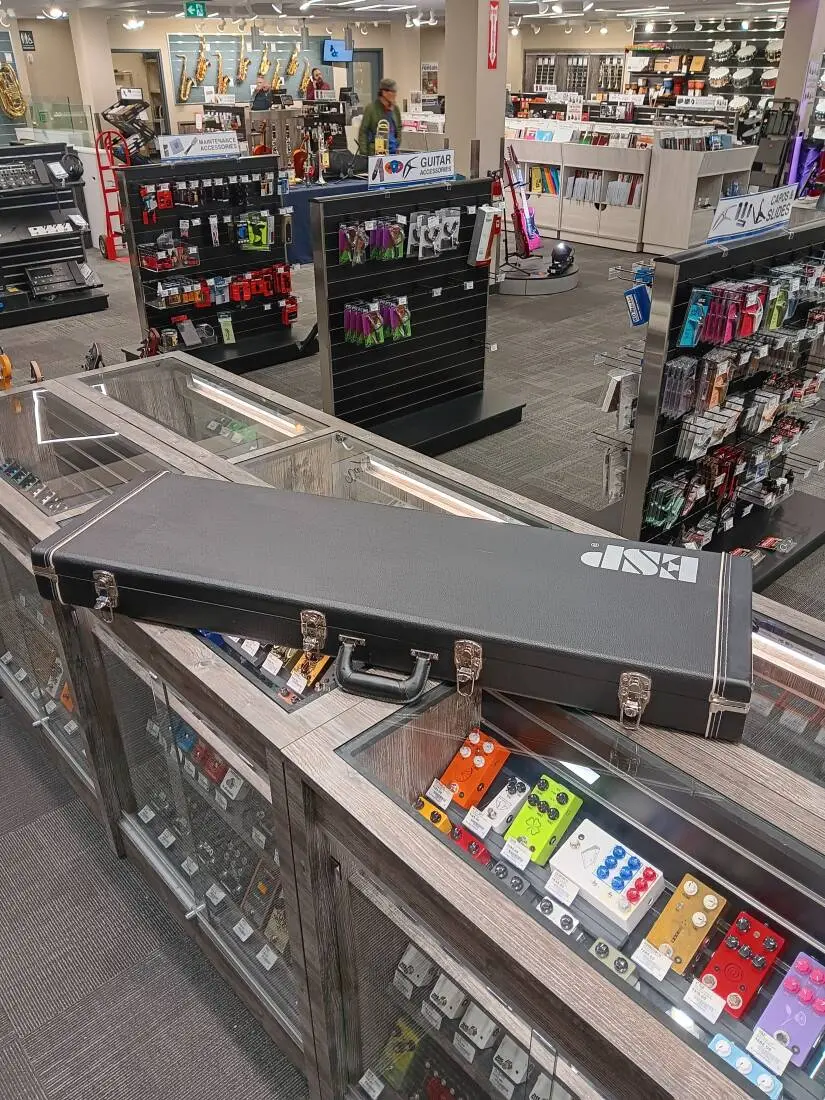 The official ESP hard shell form fit case for a left-handed B Bass 4 string