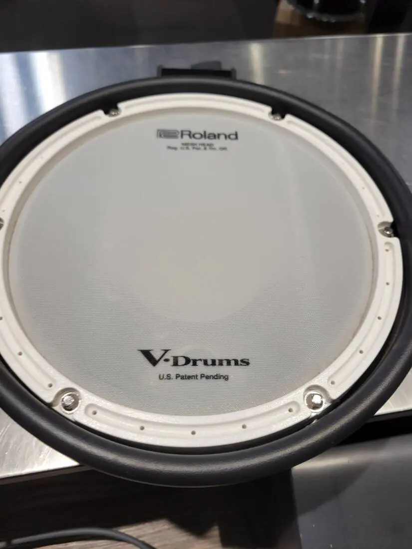 Rolands newest mesh V-Pad (PDX-8) offers an expanded 10-inch rim for more comfortable and quiet rim-shots, as well as separate head and rim triggering for authentic performance.