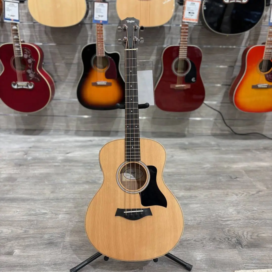 Taylor's short-scale acoustic bass is a great way to add new fun to your acoustic repertoire, thanks to a portable frame and punchy sound that will inspire you to broaden your musical horizons. The GS Mini-e Maple Bass features specially formulated D'Addario nylon-core strings that provide plenty of snap and low-end punch without putting too much strain on your fingers - or the instrument's neck, complementing the already-comfortable feel of the slender neck profile. A solid spruce top produces projection and power, while the layered maple back and sides add a lustrous visual dimension. With the ES-B pickup on board, you're all set for massive sound through an amplifier or PA, and the soft gig bag offers easy transportation.