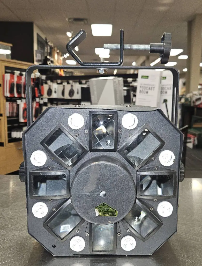 * High Output 3 FX in 1: Moonflower, Strobe and Laser effect with 6 x 5W (RGBWYP) HEX LED's + 8 x 3W White LED's + Red & Green Lasers technology produces color-changing beams of light