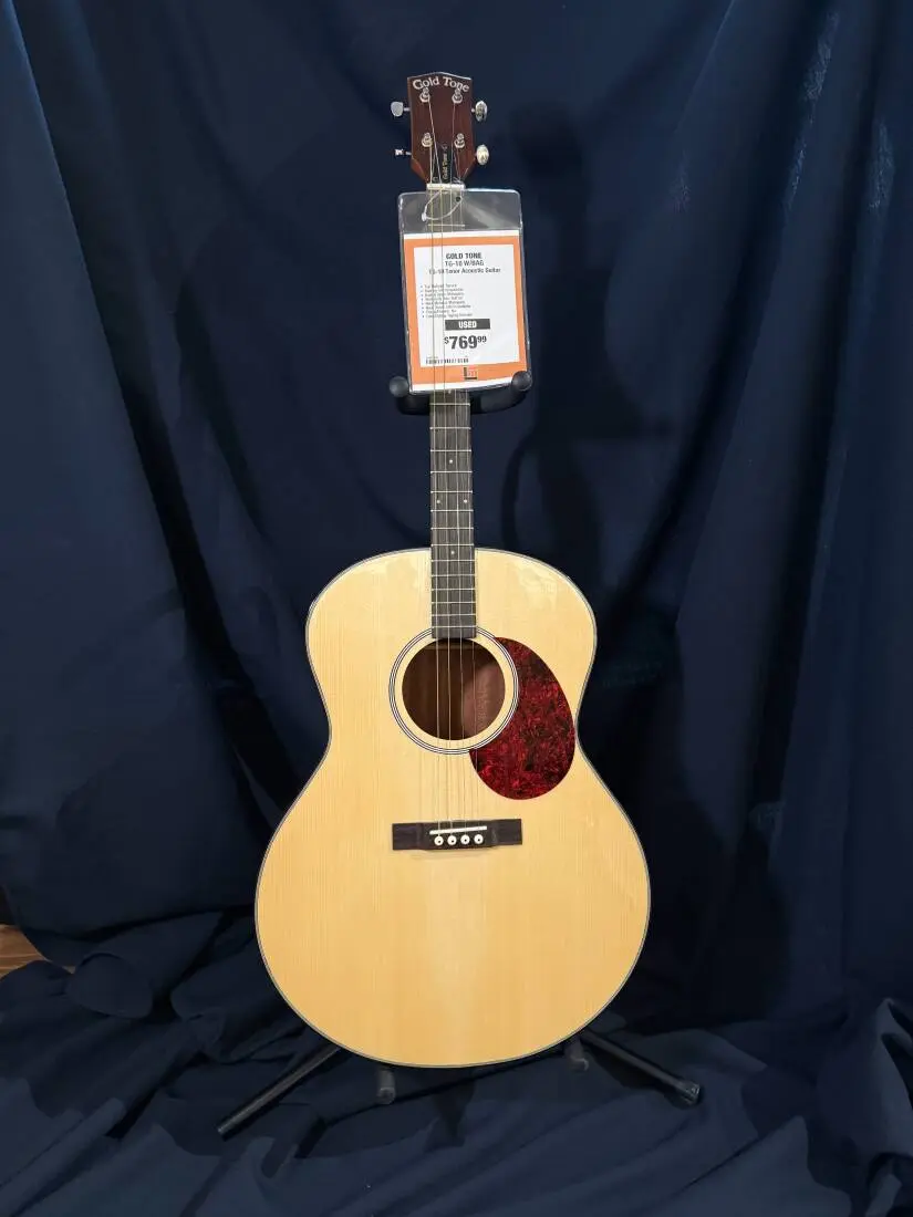 The Gold Tone TG-10 tenor guitar has a strong laminated wood body that is very stable through changing weather conditions. The bolt-on neck assures easy serviceability and the playing action is low and comfortable. Tuned like the tenor banjo, the TG-10 is ideal for chord-melody style playing. Speaking of tenor banjo players, every one of you should have a TG-10 in your bag o' tricks.