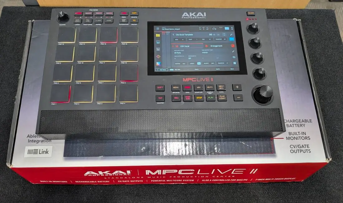 Under the hood, MPC Live II includes the same multi-core processor as the MPC X, with every mainstay you demand from a modern MPC. Take compete command of your production with Akai Professional's iconic 16-pad format. Sequence, edit and chop samples on the bright 7-inch touch screen colour display. Shape your ideas with four capacitive-touch knobs and dive into all critical functions with an arsenal of dedicated buttons meticulously arranged for the ultimate production workflow. Backed by a super-intuitive UI, and packed with everything you demand for professional production, MPC Live II is laser-focused on your creativity.