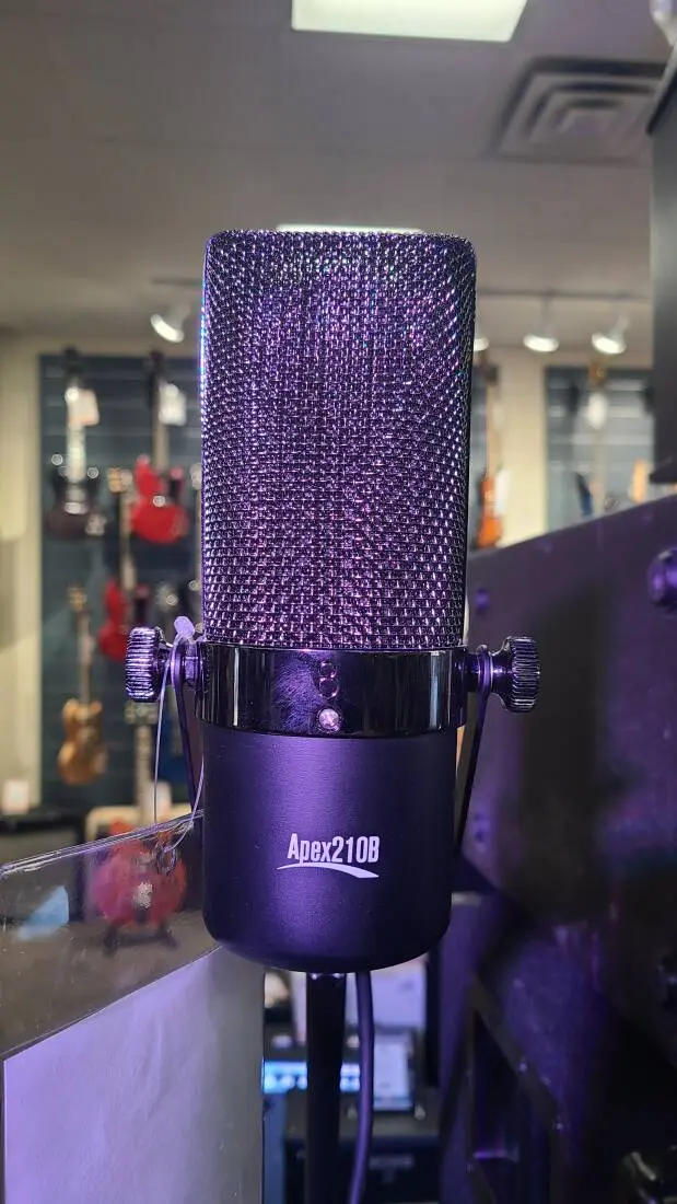 The active element of the Apex210 is a very thin corrugated aluminum ribbon mounted under low tension between the poles of a strong magnet. The asymmetrical figure-8 pickup pattern has an extended sweet spot on the rear face of the microphone allowing the recording to accurately reproduce the natural space and ambient reverberation of a good sounding live room with incredibly fast and accurate transient response and stunning realism. The Apex210 ribbon microphone is ideal for todays direct to digital recordings.