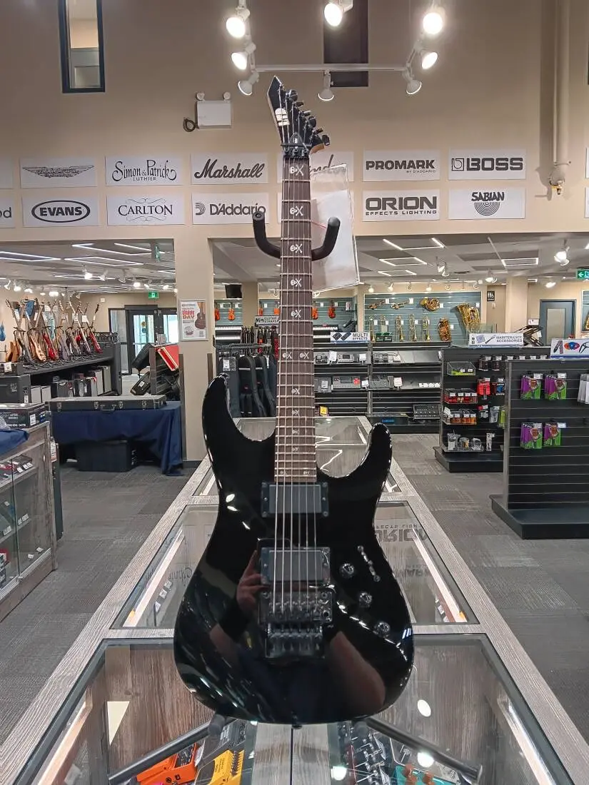 Even as the most affordable guitar in ESP's LTD Kirk Hammett Signature Series, the KH-202 is still completely ready to rock. For anyone who appreciates the influential leads and heavy riffs of Metallica's lead guitarist, the KH-202 will deliver. It features bolt-on construction, a basswood body, an extra-thin U-shaped maple neck, rosewood fingerboard with 24 extra-jumbo frets and Kirk's skull-and-bones inlays, and components that include a Floyd Rose Special bridge and a set of ESP Designed LH-301 pickups. Available in Black finish.