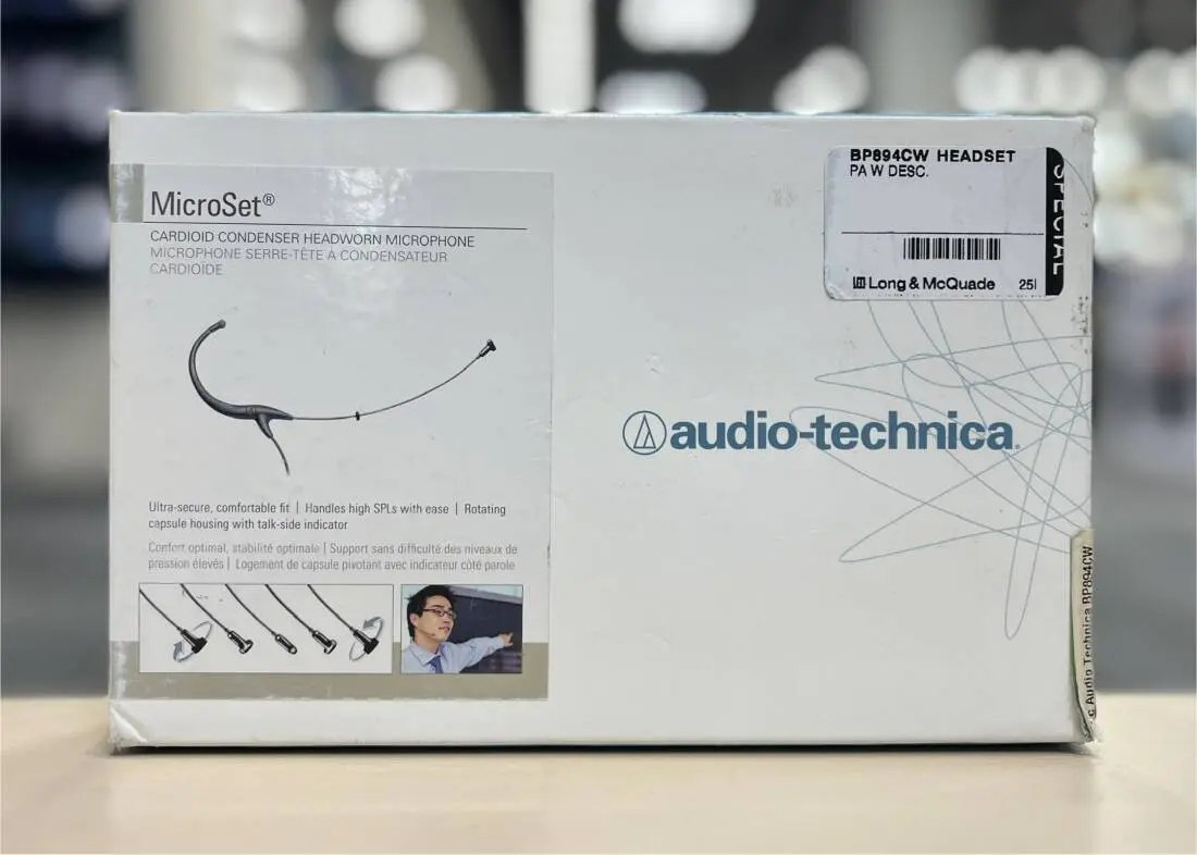 Audio-Technica's innovative BP894 MicroSet® offers the ultimate in low-profile, high-performance audio. The BP894 features a rotating capsule housing with talk-side indicator for use on either ear and perfect polar pattern placement. The MicroSet BP894 takes headworn microphones to the next level, by allowing the cardioid capsule to be aimed directly at the sound source. The uniform pickup pattern provides excellent rejection of outside noise, with exceptional gain-before-feedback when used with live sound systems and stage monitors. Delivering clear and accurate sound in an inconspicuous package, the ultra-lightweight BP894 hooks securely behind either ear and can be worn for hours witout fatigue. For maximum stability and comfort, the included AT8464 dual-ear microphone mount converts the MicroSet to a dual-ear-worn unit.